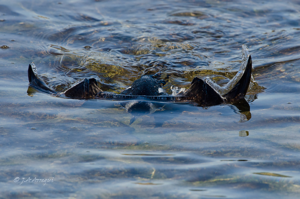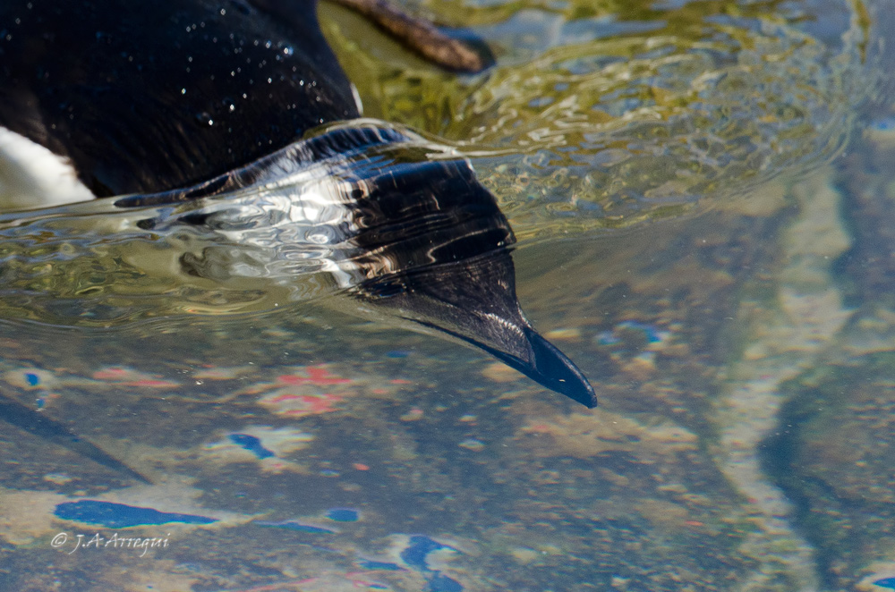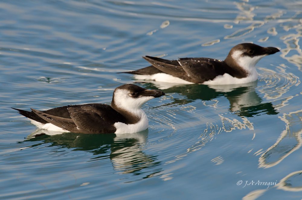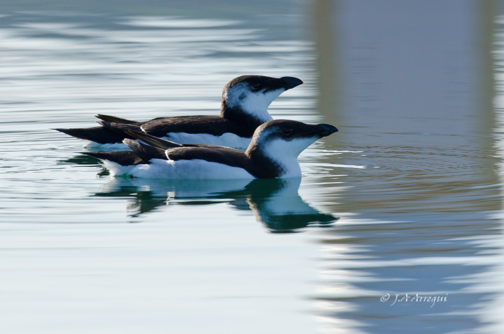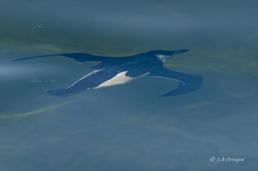 A finales de enero, tuve la oportunidad de disfrutar de estas alcas que estuvieron de vacaciones invernales en el Puerto de Laredo. Lo más notable fue que uno de los individuos , cuando ya me retiraba a ver aves a Santoña, le dió por hacer inmersiones muy cercano al muelle lo que me dio la oportunidad de observar con total detalle como realiza el vuelo subacuatico esta especie.
